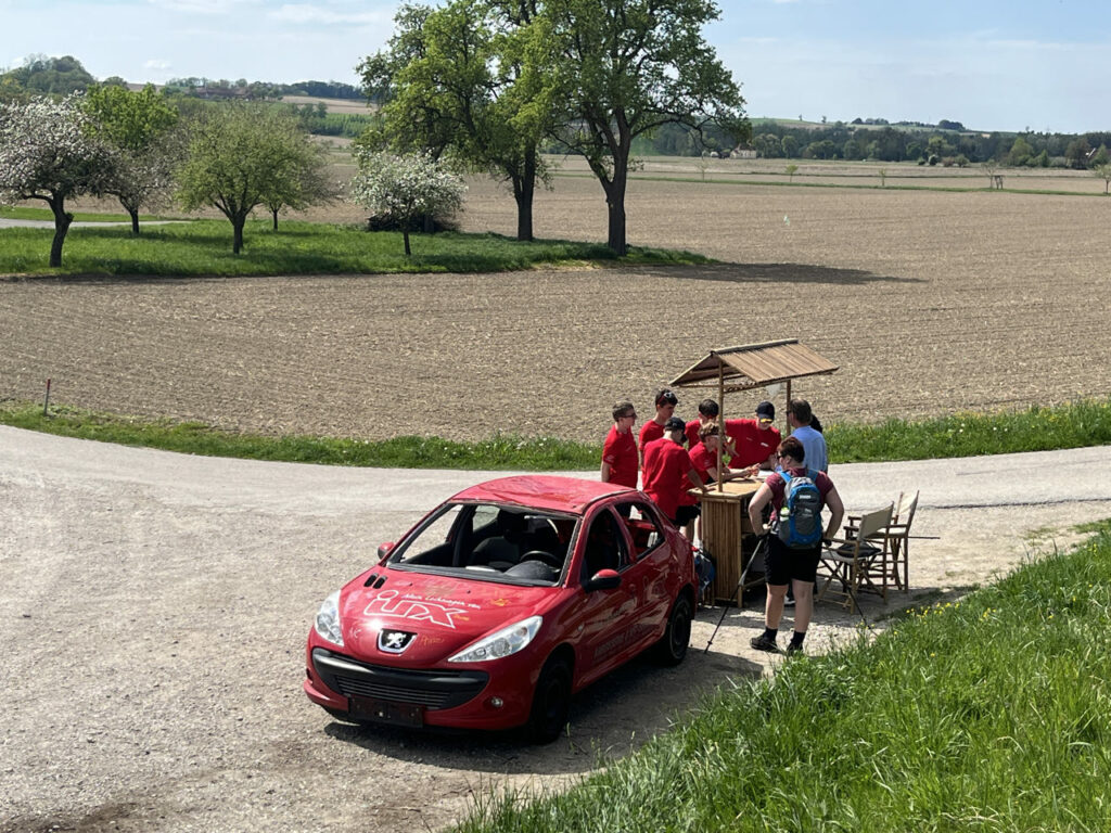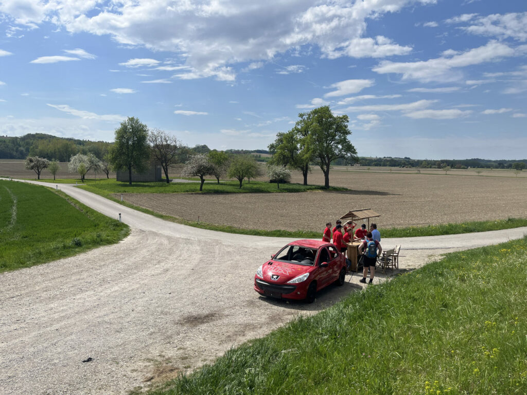 In St. Pantaleon-Erla (Stein) erwartete sie der Vizebürgermeister Josef Alkin und seine Helfer:innen mit einer Challenge und einer Stärkung