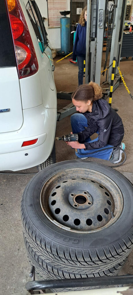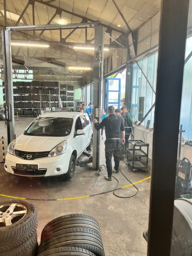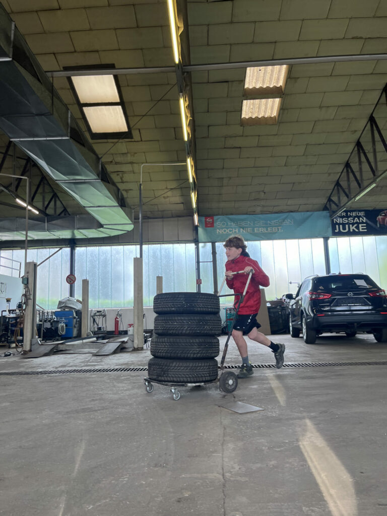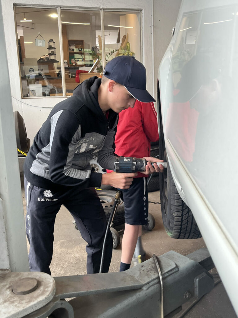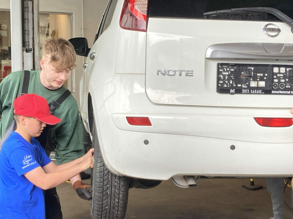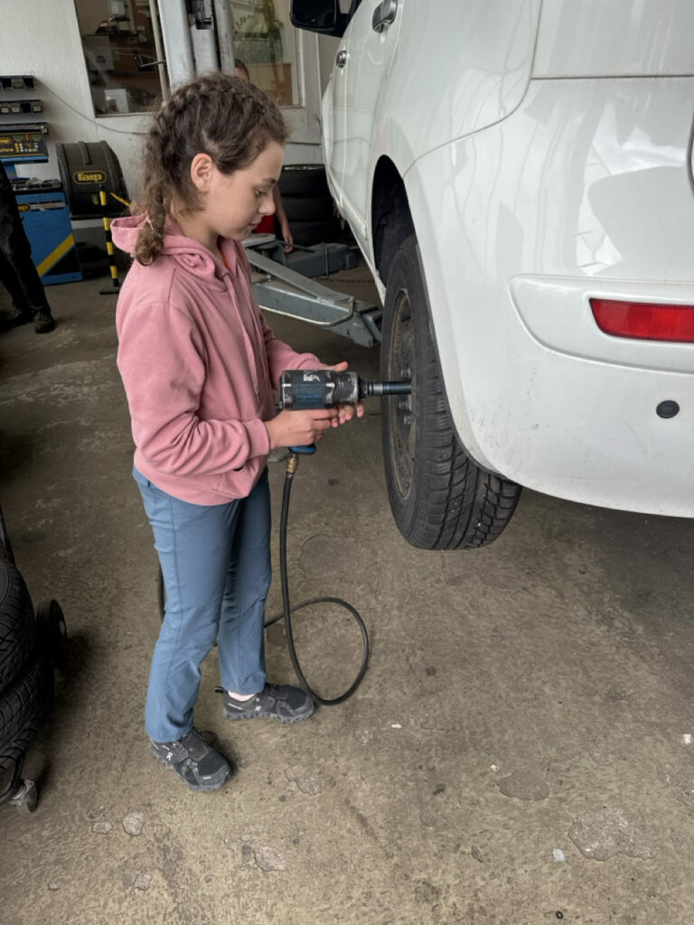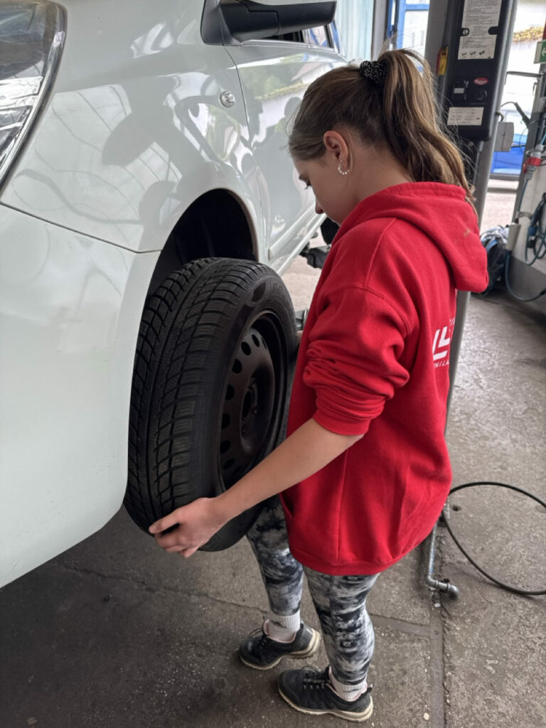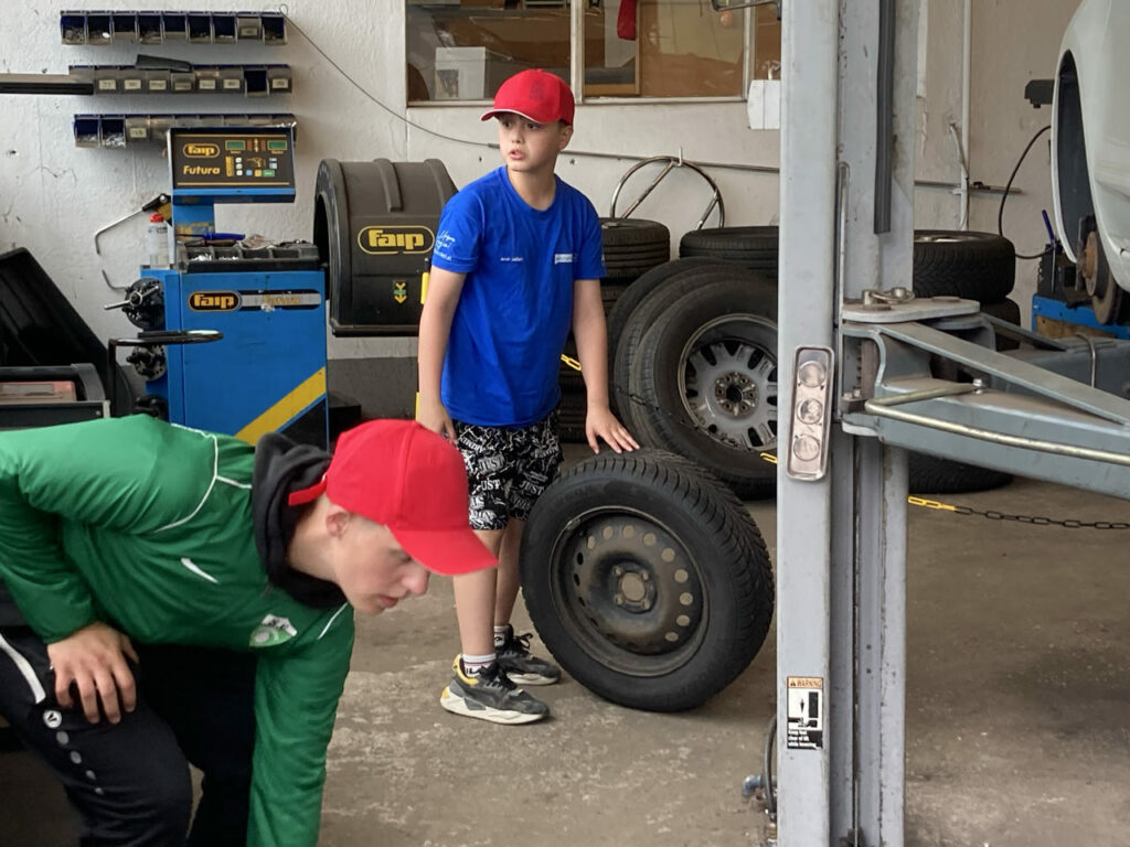 In Ernsthofen durften die Kids erstmal Reifen wechseln beim Autopark Doppelmeier und dann noch eine Runde im AIXAM drehen.