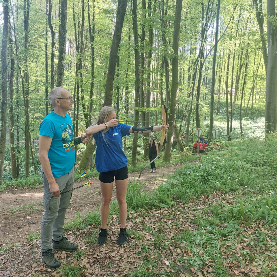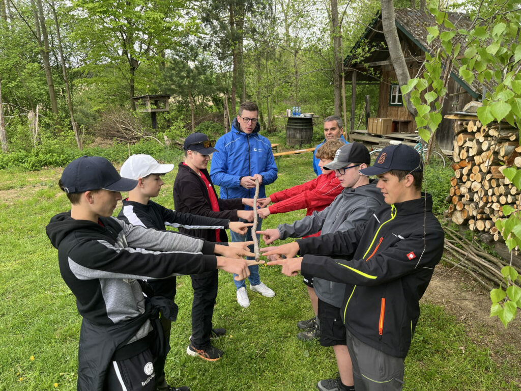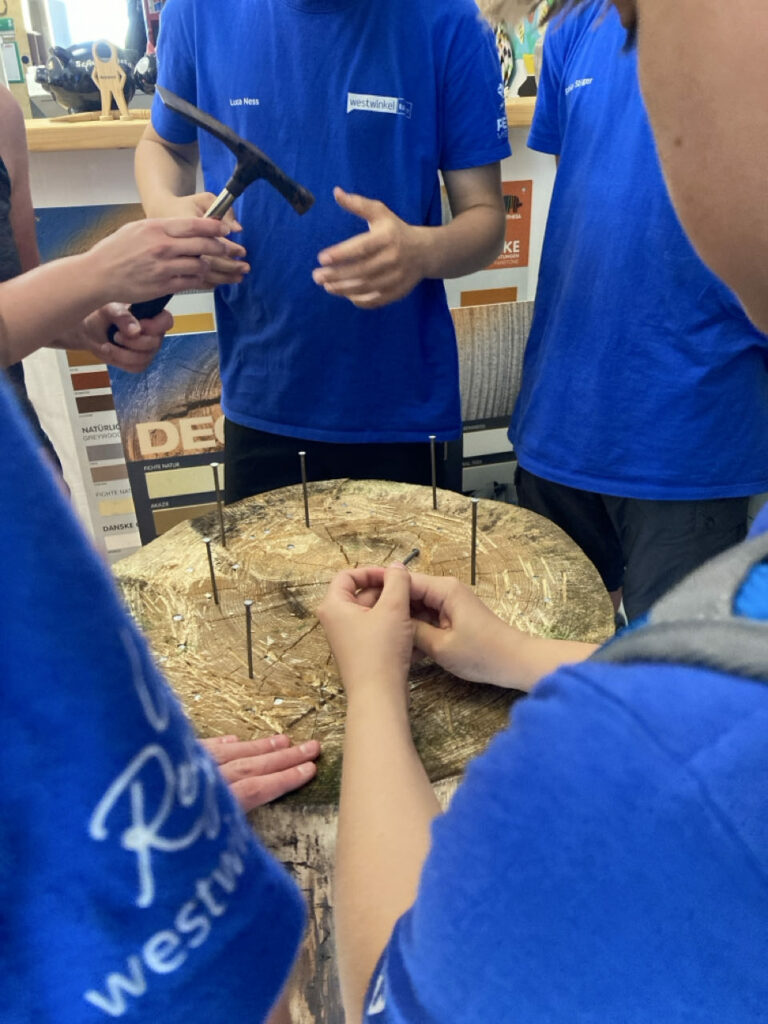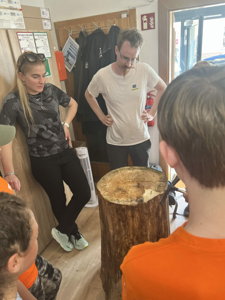 In Strengberg angekommen, ging es erstmal zu Holzbau Michlmayr, wo die grauen Zellen und die Treffsicherheit geprüft wurden.