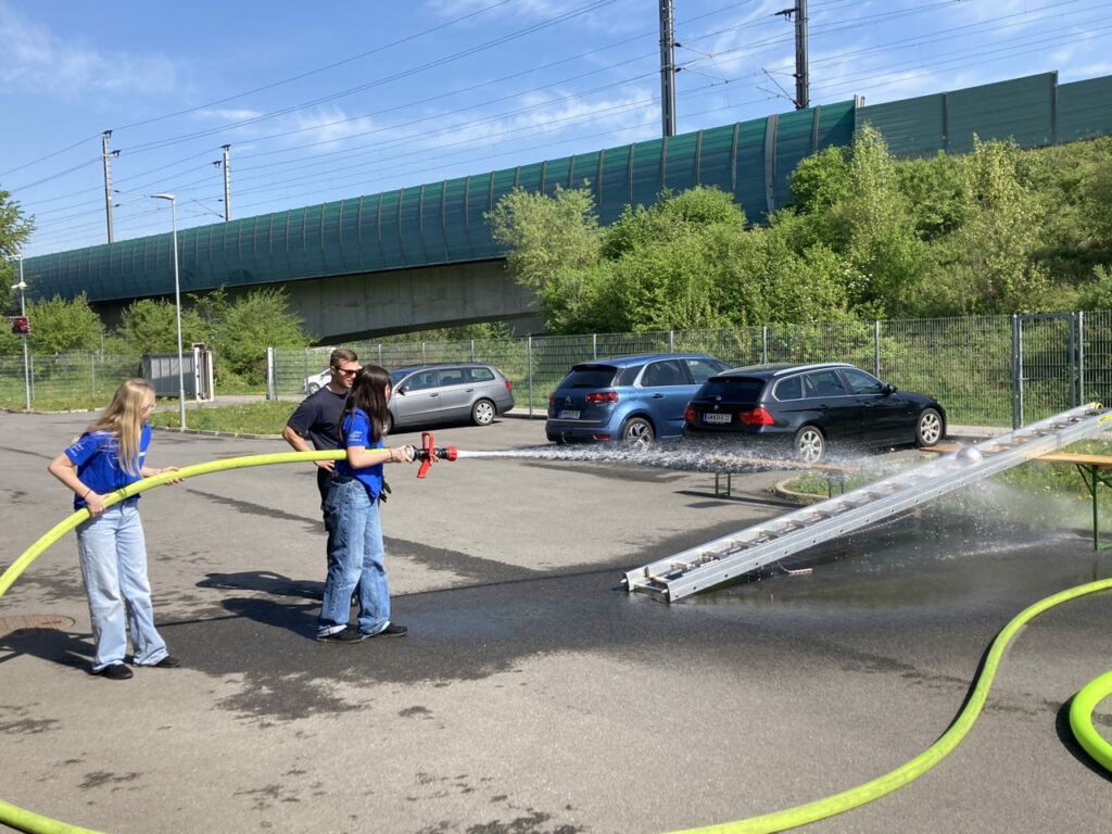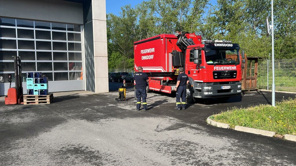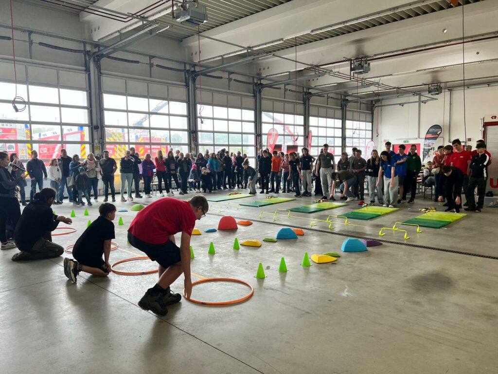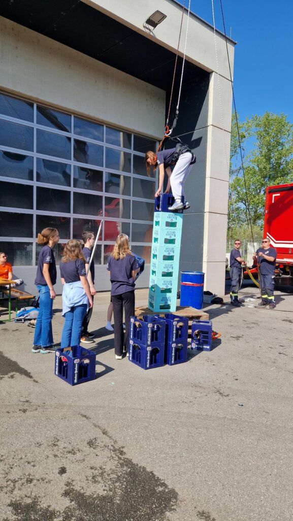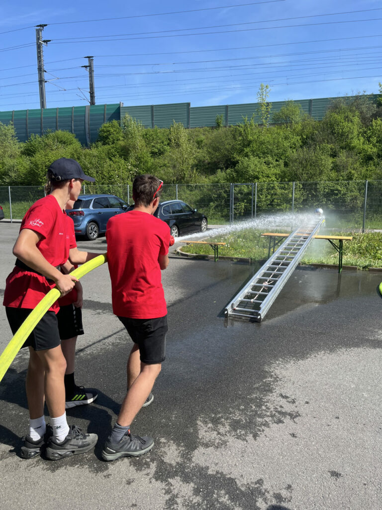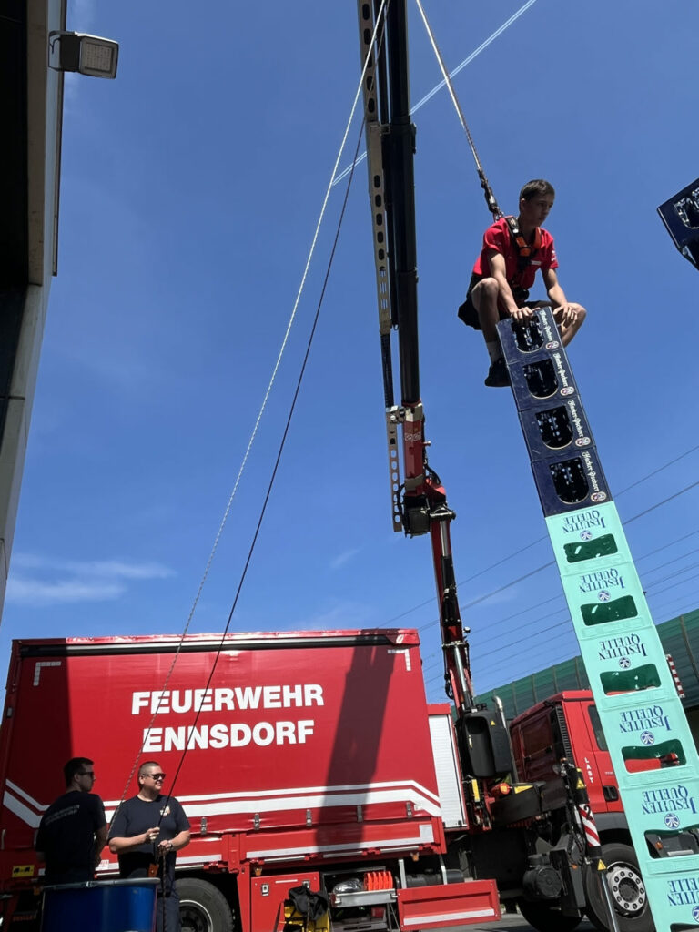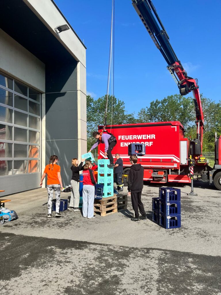 Bei der Freiwilligen Feuerwehr Ennsdorf konnten sie sich im Kistenklettern und Ballspritzen unter Beweis stellen. Dafür durften sie dann im Feuerwehrauto mitfahren: