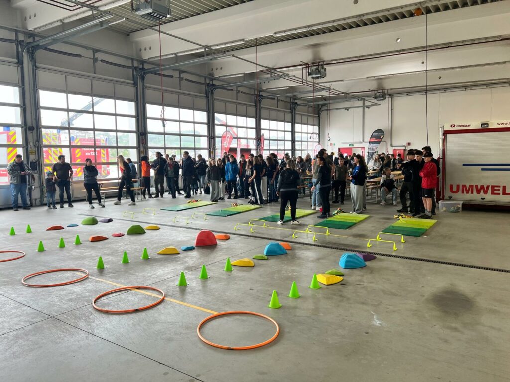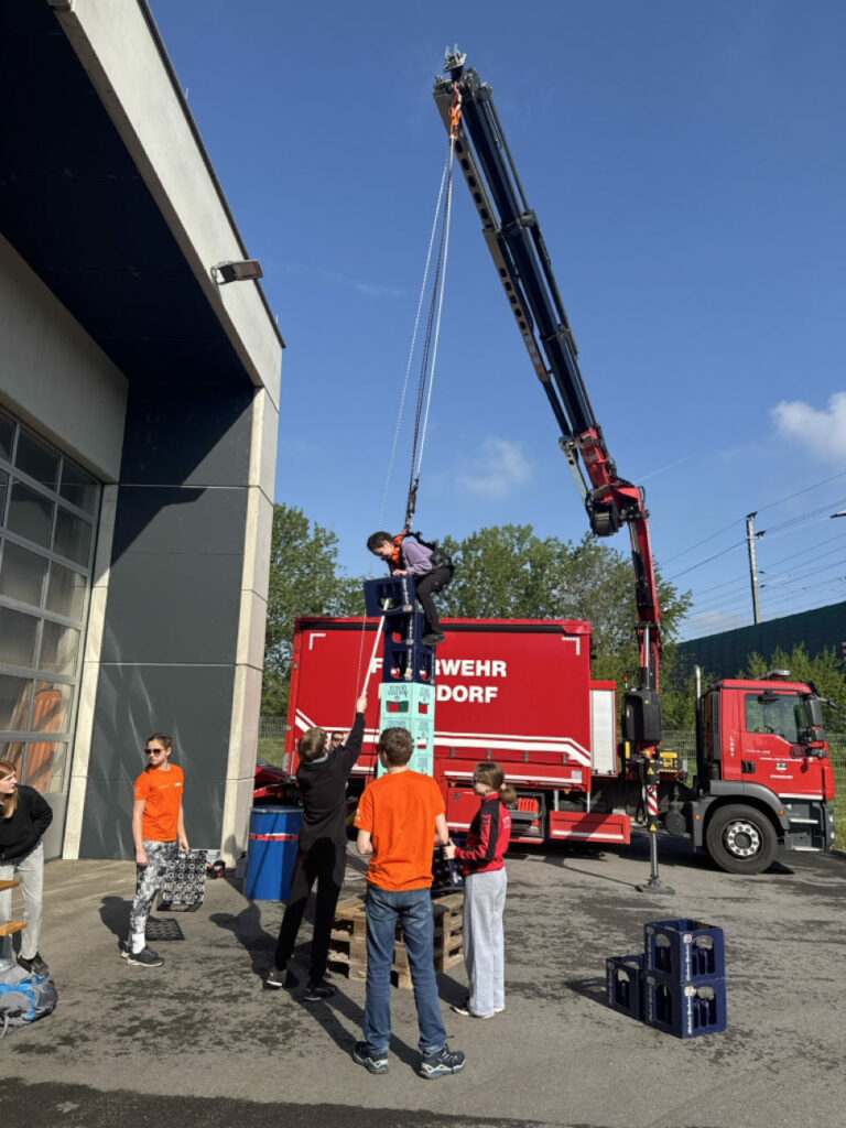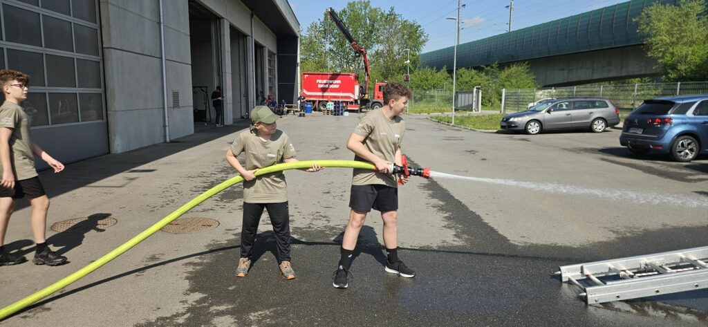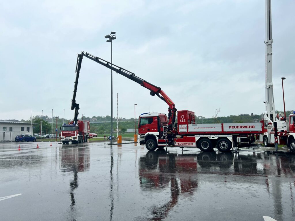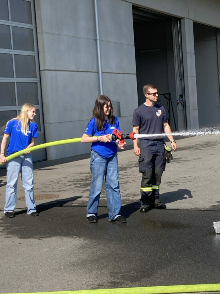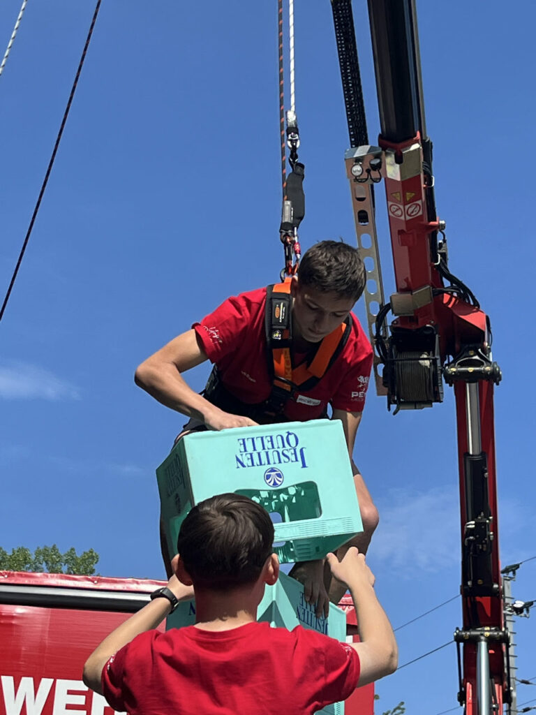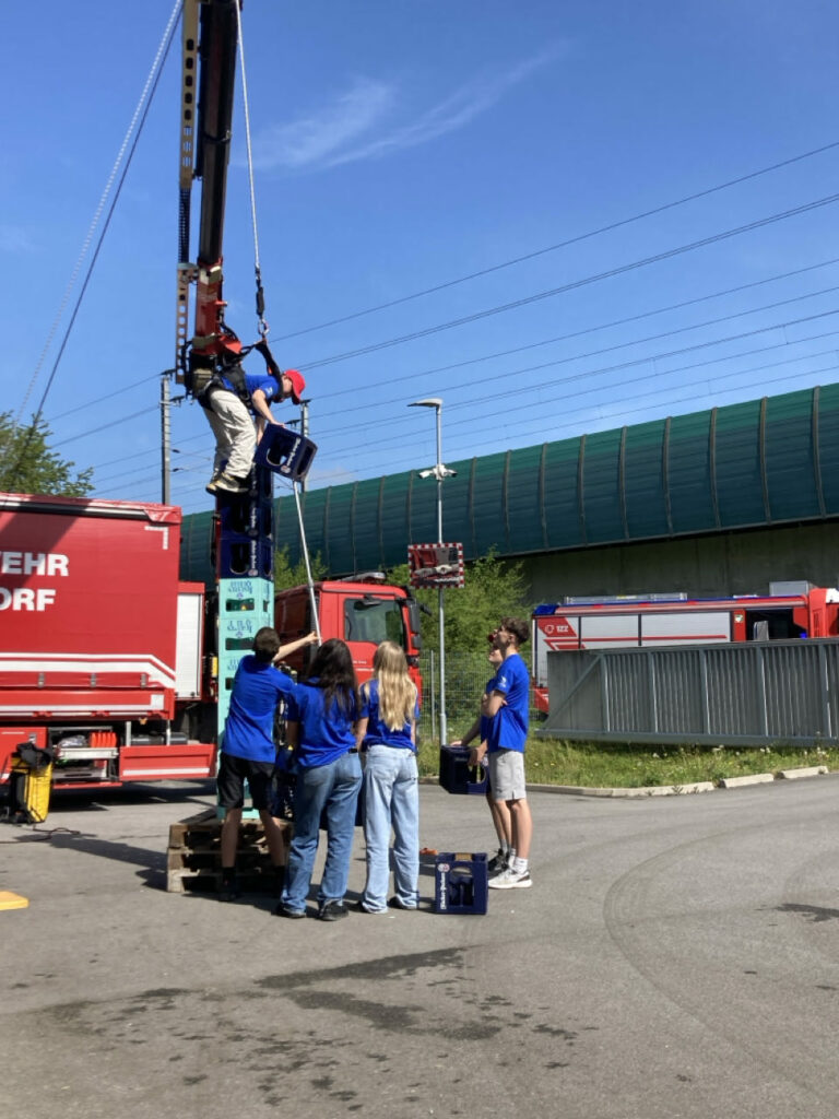 Bei der Freiwilligen Feuerwehr Ennsdorf konnten sie sich im Kistenklettern und Ballspritzen unter Beweis stellen. Dafür durften sie dann im Feuerwehrauto mitfahren: