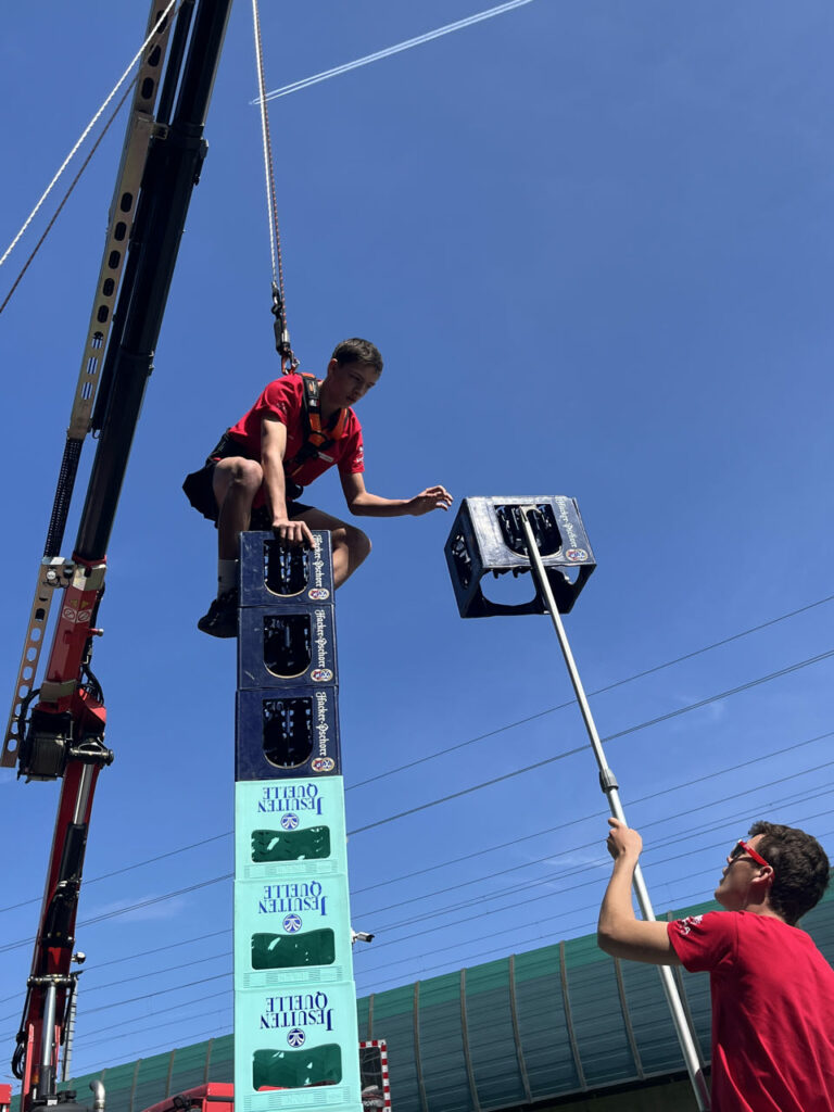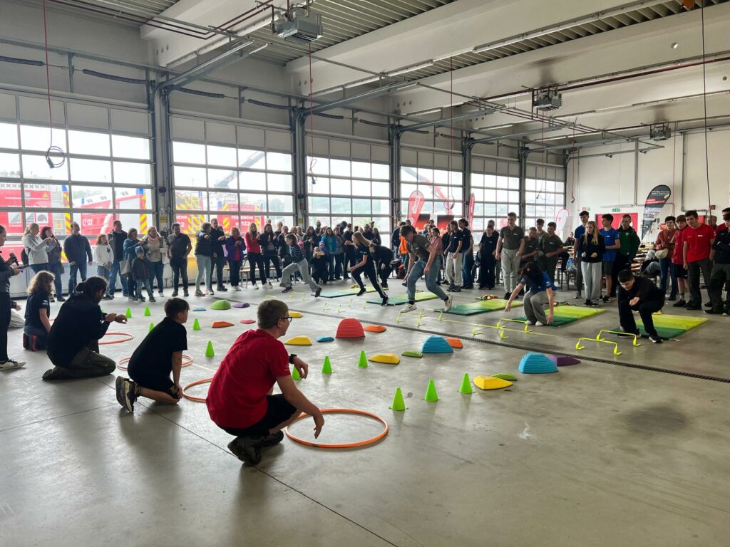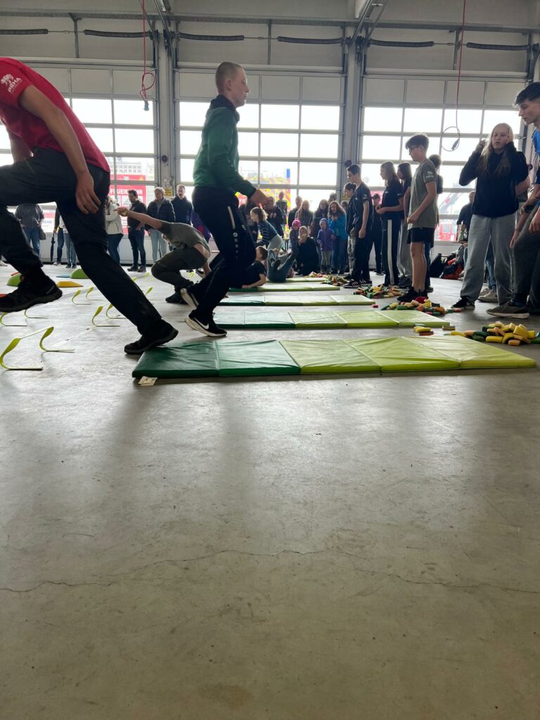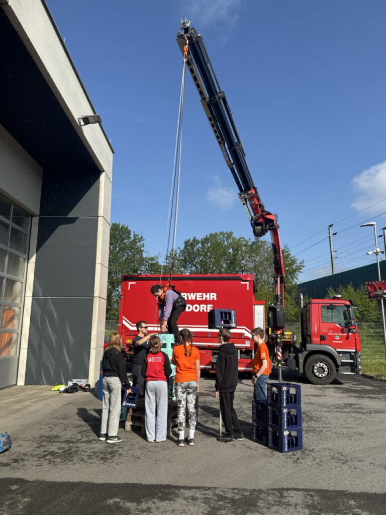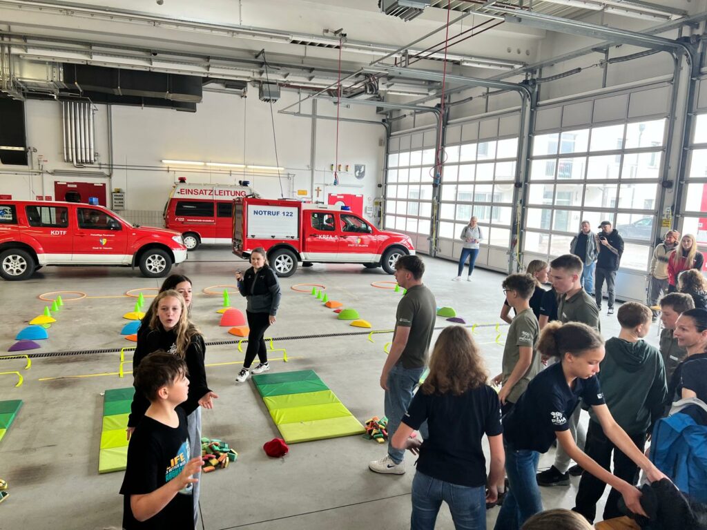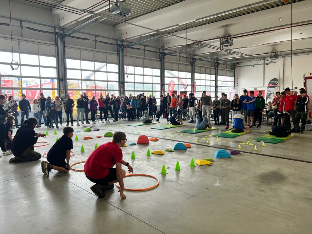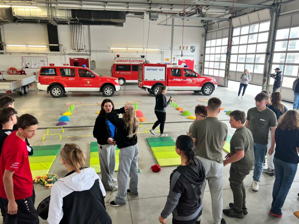 Bei der Freiwilligen Feuerwehr Ennsdorf konnten sie sich im Kistenklettern und Ballspritzen unter Beweis stellen. Dafür durften sie dann im Feuerwehrauto mitfahren: