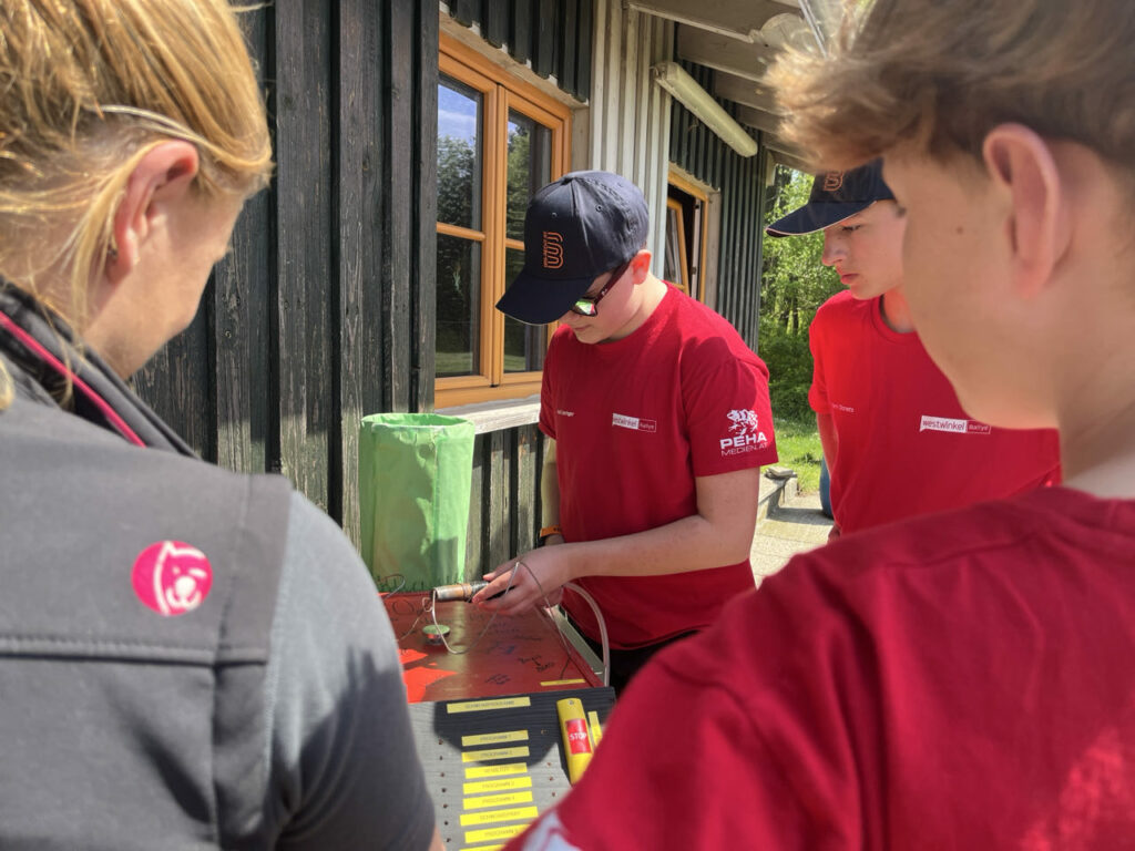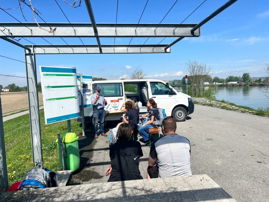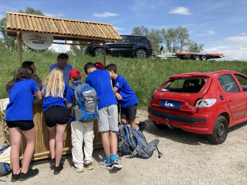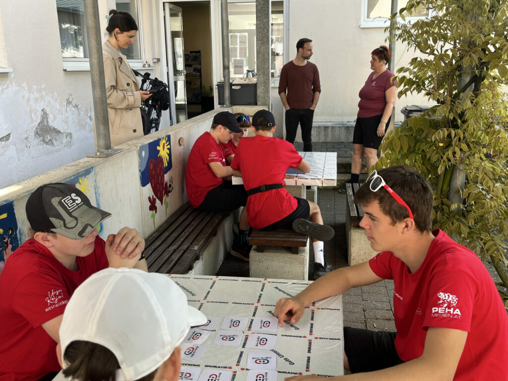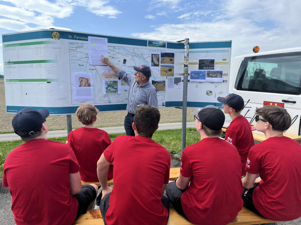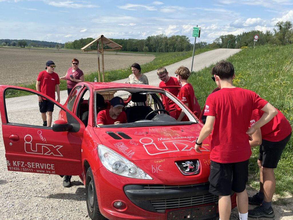Dann ging’s Richtung St. Valentin weiter. In Kleestorf wartete schon Waldtraud Ecker von UNIQA Versicherungen mit ihren Kollegen auf die Rätselfreudigkeit der Jugendlichen.