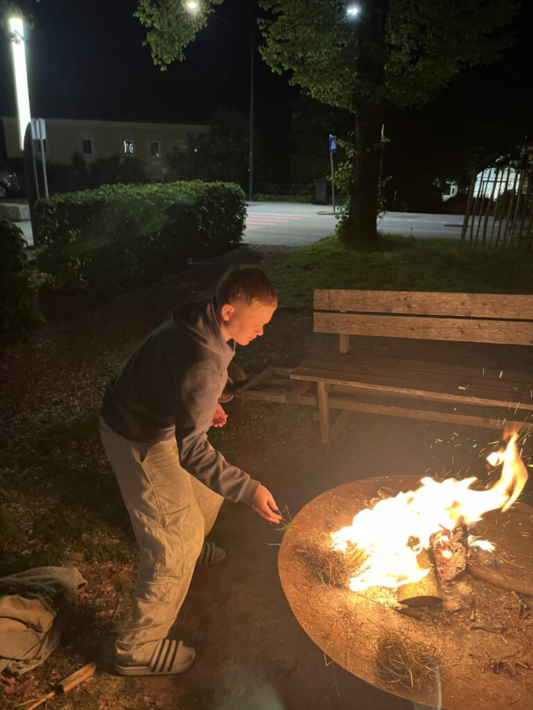 Nach dem gemütlichen Einrichten im Turnsaal, war noch ein Activity bei der Gemeinde Ernsthofen dran. Feuer machen am Abend, eine Runde Tischtennis und ein leckeres Frühstück von ADEG Gisela Haumann rundete den Aufenthalt in Ernsthofen ab.
